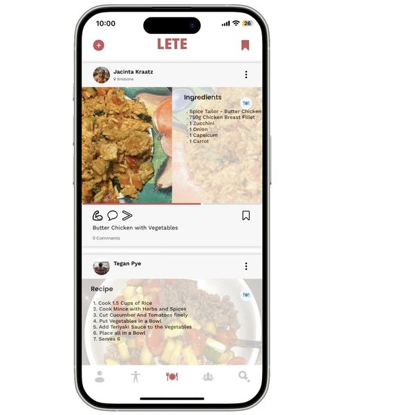 Share your meals on LETE by posting a photo, recipe ingredients, and the full recipe, so your friends can see what you're eating and keep you accountable. Explore others' posts to discover new healthy meals and get inspired by the creative ways people are fueling their fitness journeys. With LETE, you not only track your nutrition but also connect with a community focused on staying fit and healthy together.